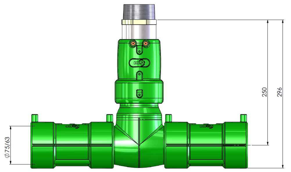 KPS double-wall product tee: 3 welding operations, vertical build 296 mm (cc 250 mm).